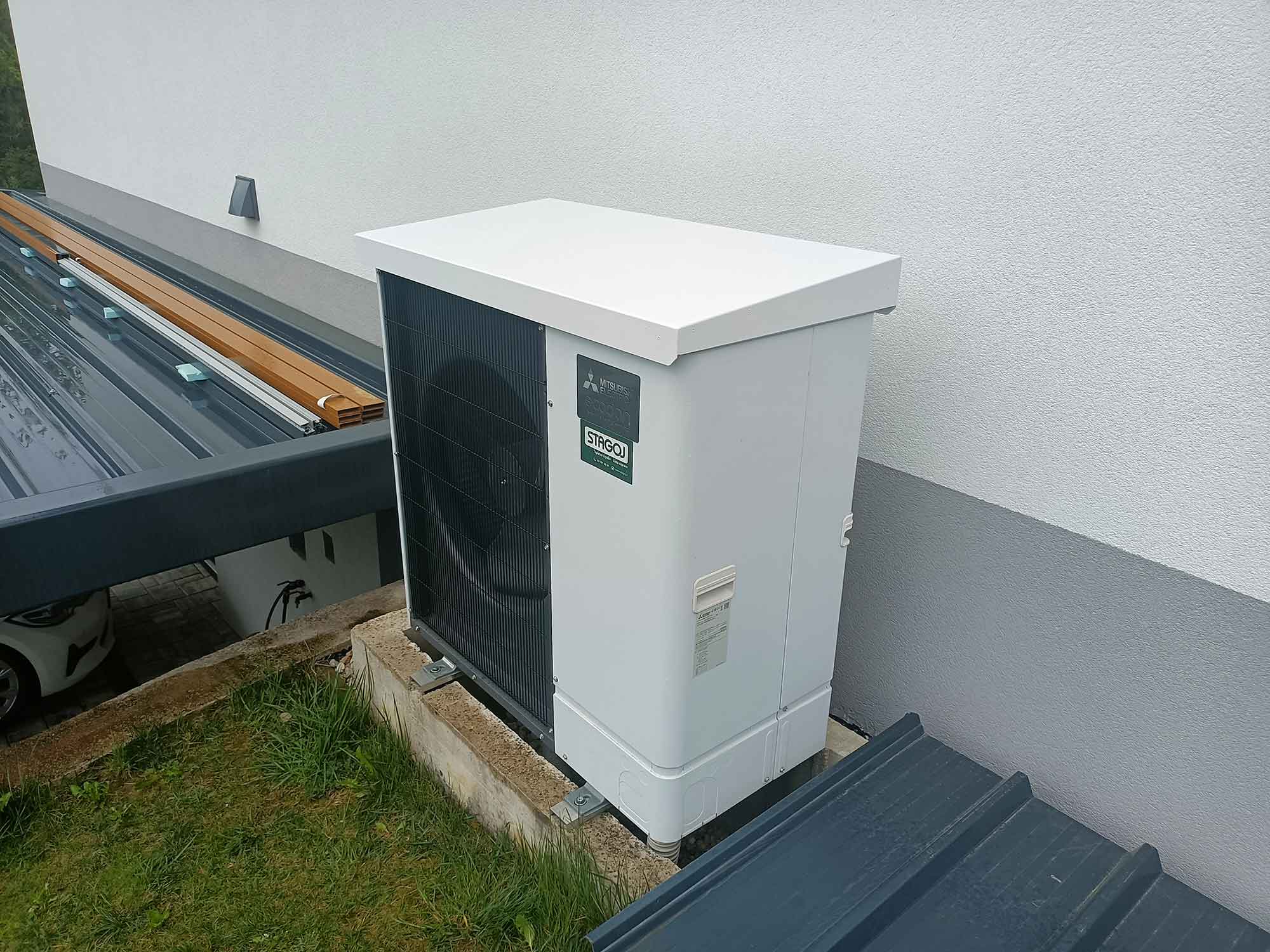 Pametna konstrukcija strehe preprečuje zamakanje in neposreden stik vode s ključnimi deli toplotne črpalke, kar zmanjšuje tveganje za okvare, korozijo in prezgodnjo obrabo. Vaša toplotna črpalka bo zaščitena skozi vse leto – v vseh vremenskih razmerah.